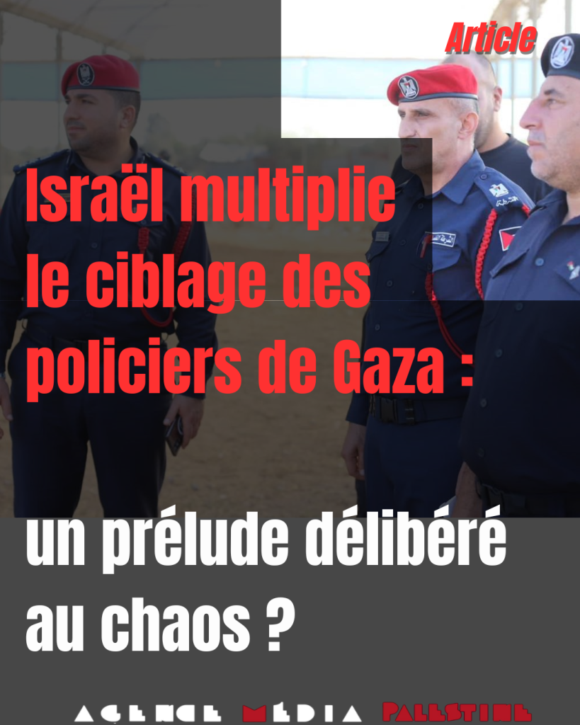 Depuis l’accord de cessez-le-feu d’octobre 2025 à Gaza, violé chaque jour par Israël, l’armée israélienne multiplie les attaques meurtrières contre la police palestinienne chargée des postes de sécurité, des points de contrôle, du maintien de l’ordre et de la protection des biens publics et privés.